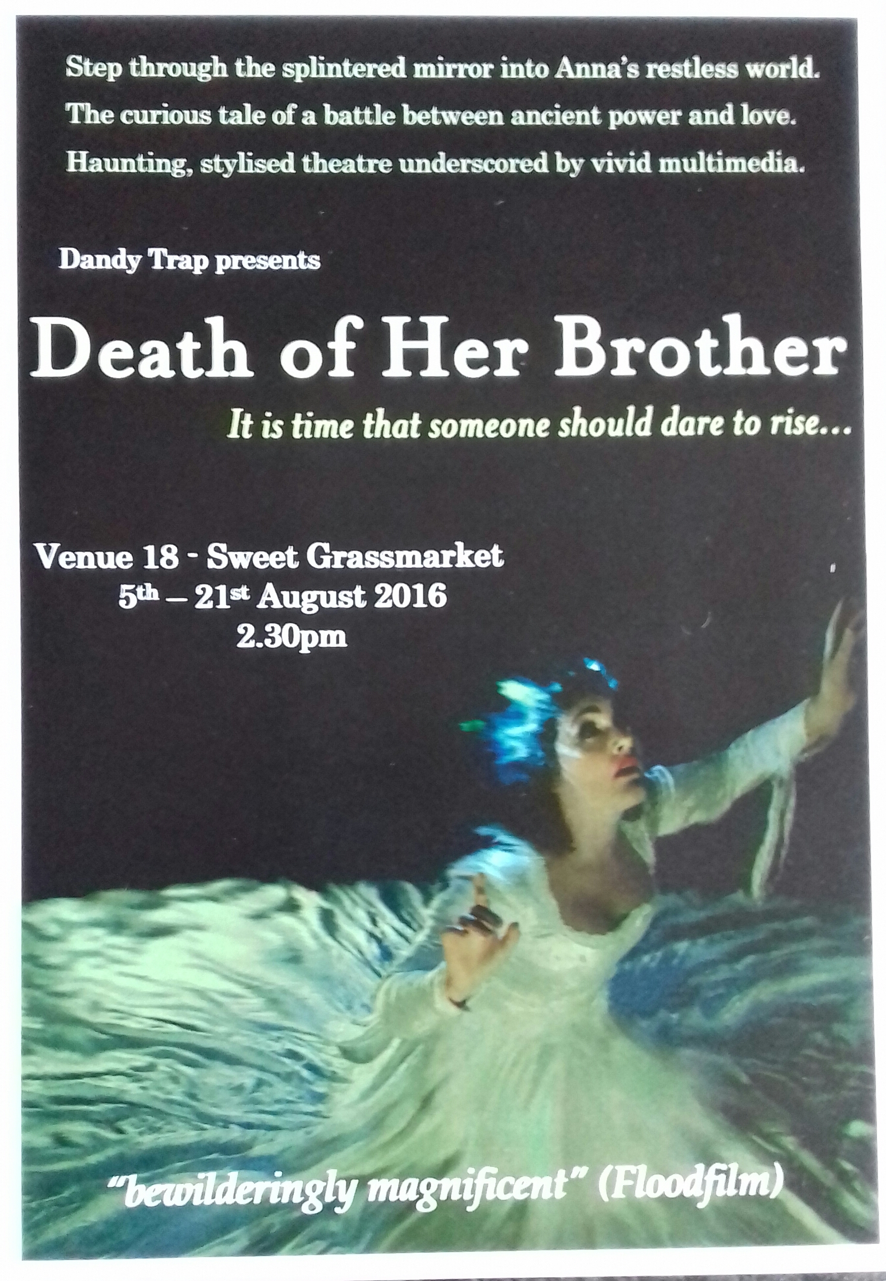 Death of Her Brother (2016) Edinburgh Fringe Festival, August 2016 Reviews taken from Albiemedia, Fringe Review, Fringe Guru and John Mackie, poet http://dandytrap.co.uk/wp-content/uploads/2018/05/distant-storm-online-audio-converter.com_.mp3